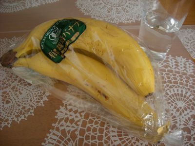 ■2009/5/19バナナと浄水の水を撮影、バナナはやや高い有機栽培なのだ。