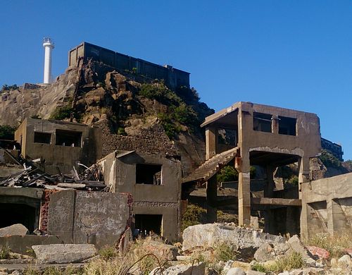 軍艦島で一番有名な、西側からの写真。軍艦に見えるかな?